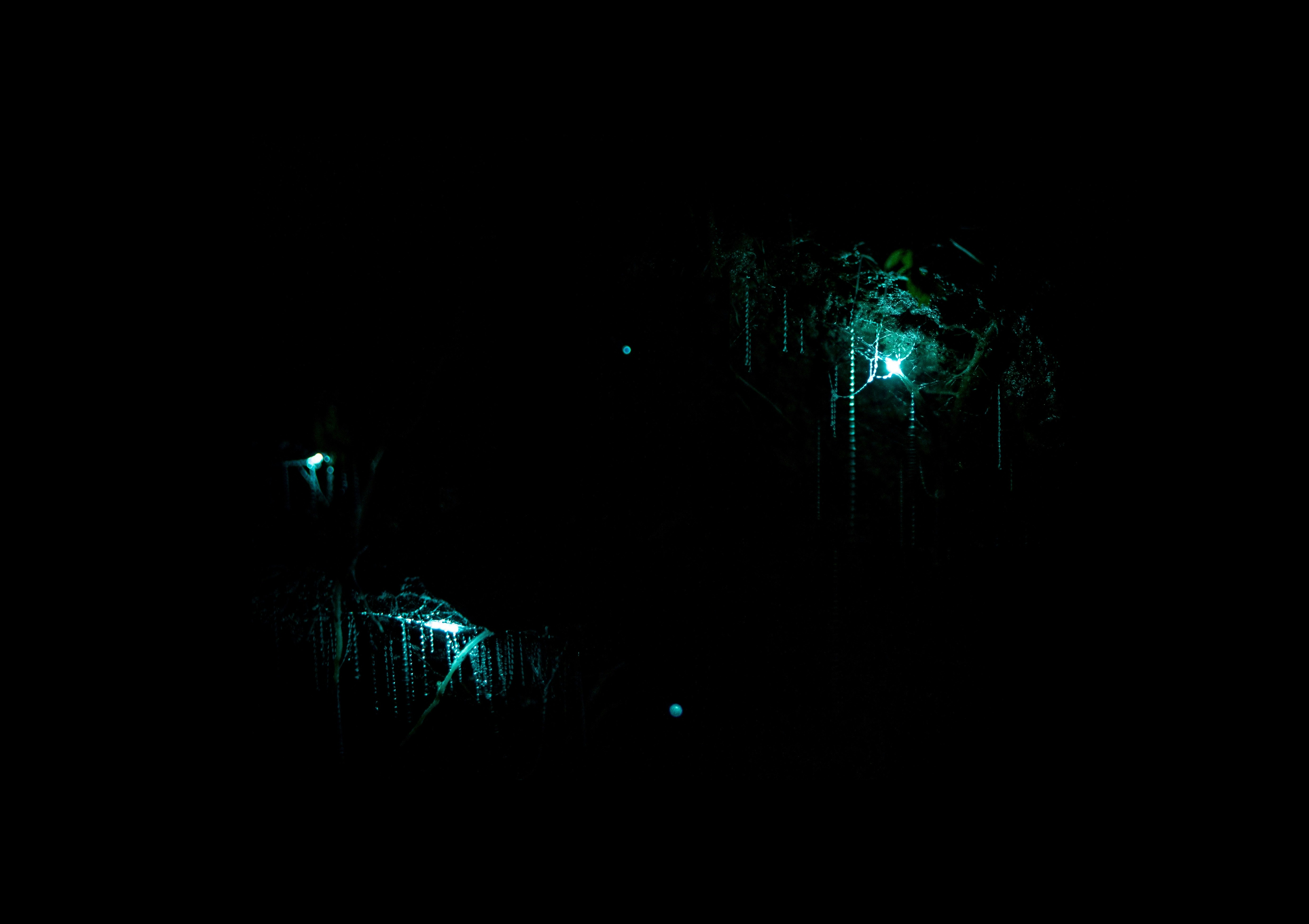 Αυτά τα μικροσκοπικά βιοφωταυγή πλάσματα μοιάζουν με χιλιάδες φωτάκια που αναβοσβήνουν στους τοίχους και την οροφή των σπηλαίων.
